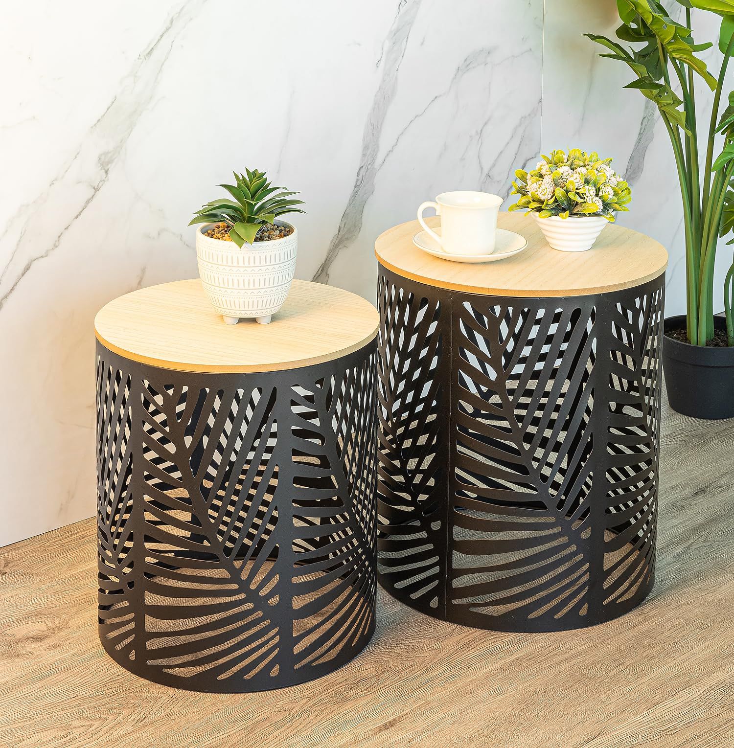 + Free Shipping🪑 طقم طاولات سيرفس خشب ومعدن – عدد 2