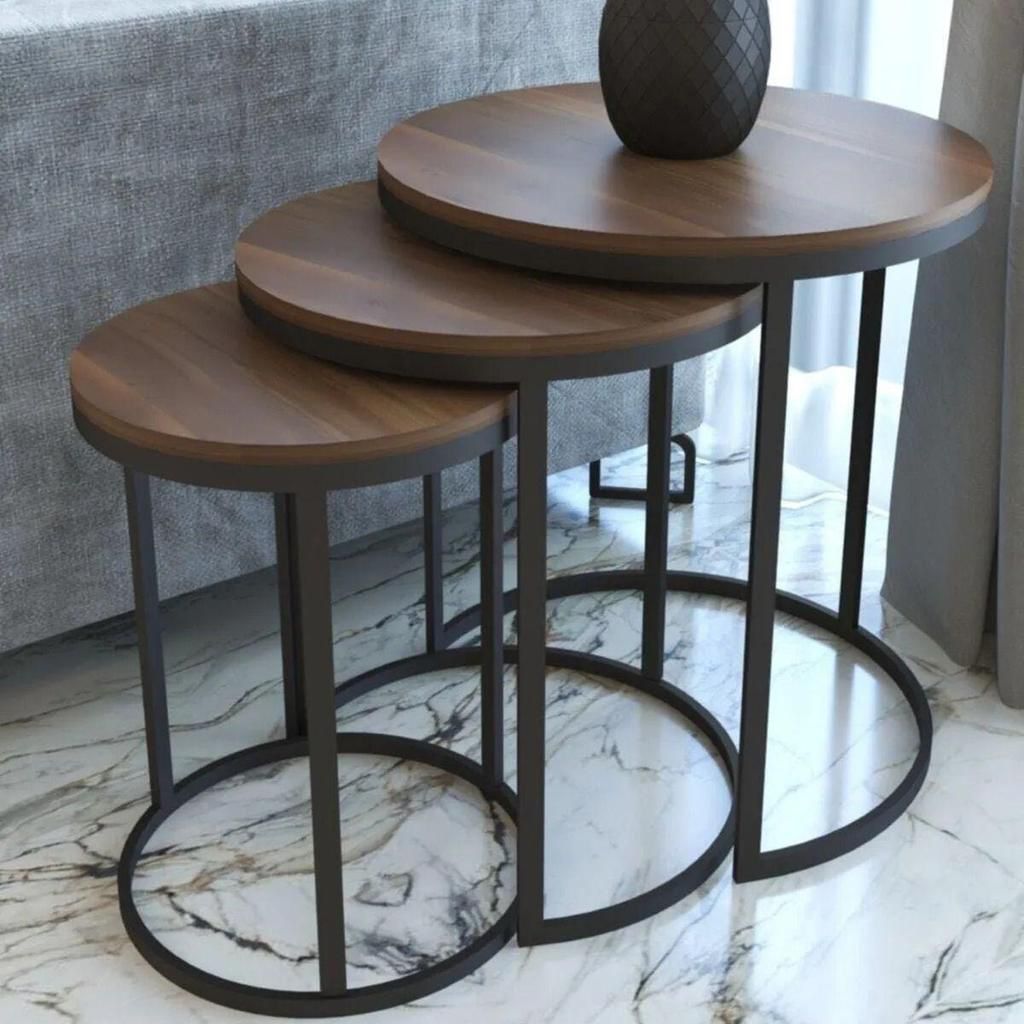 طقم مميز يجمع بين فخامة الخشب وقوة المعدن! ٣ طاولات بأحجام مختلفة، مثالية للديكور أو الاستخدام اليومي 👌