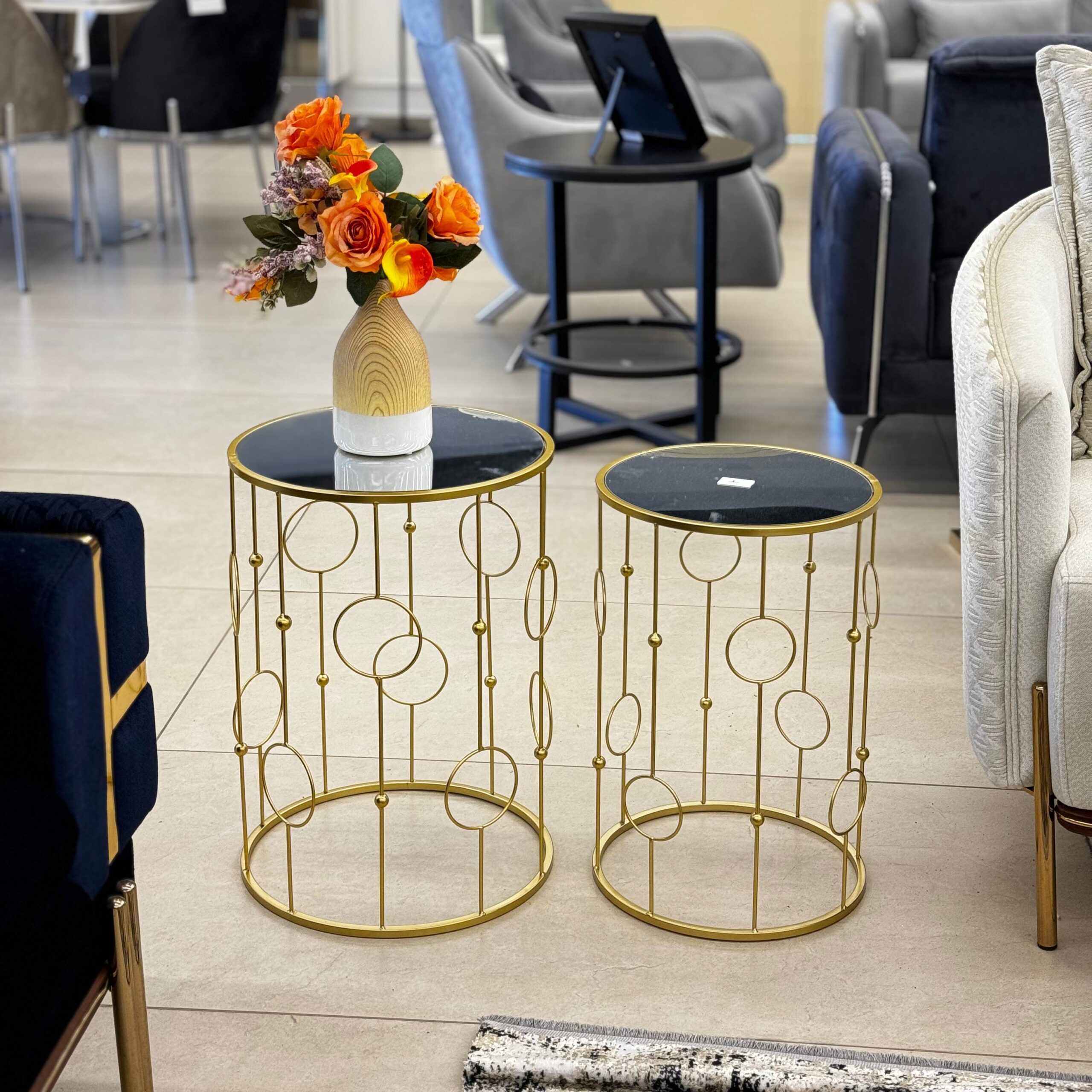 طقم طاولات معدن بوجه زجاج – عدد ٢