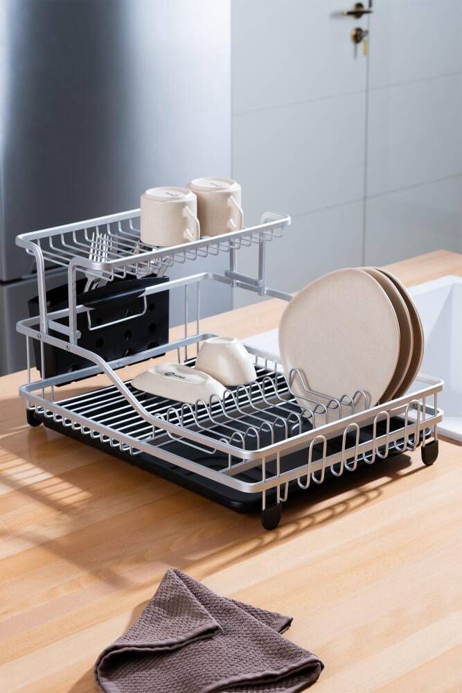 مثالي لتنظيم الصحون وتوفير المساحة بالمطبخ، مصنوع من الألمنيوم المتين 👌