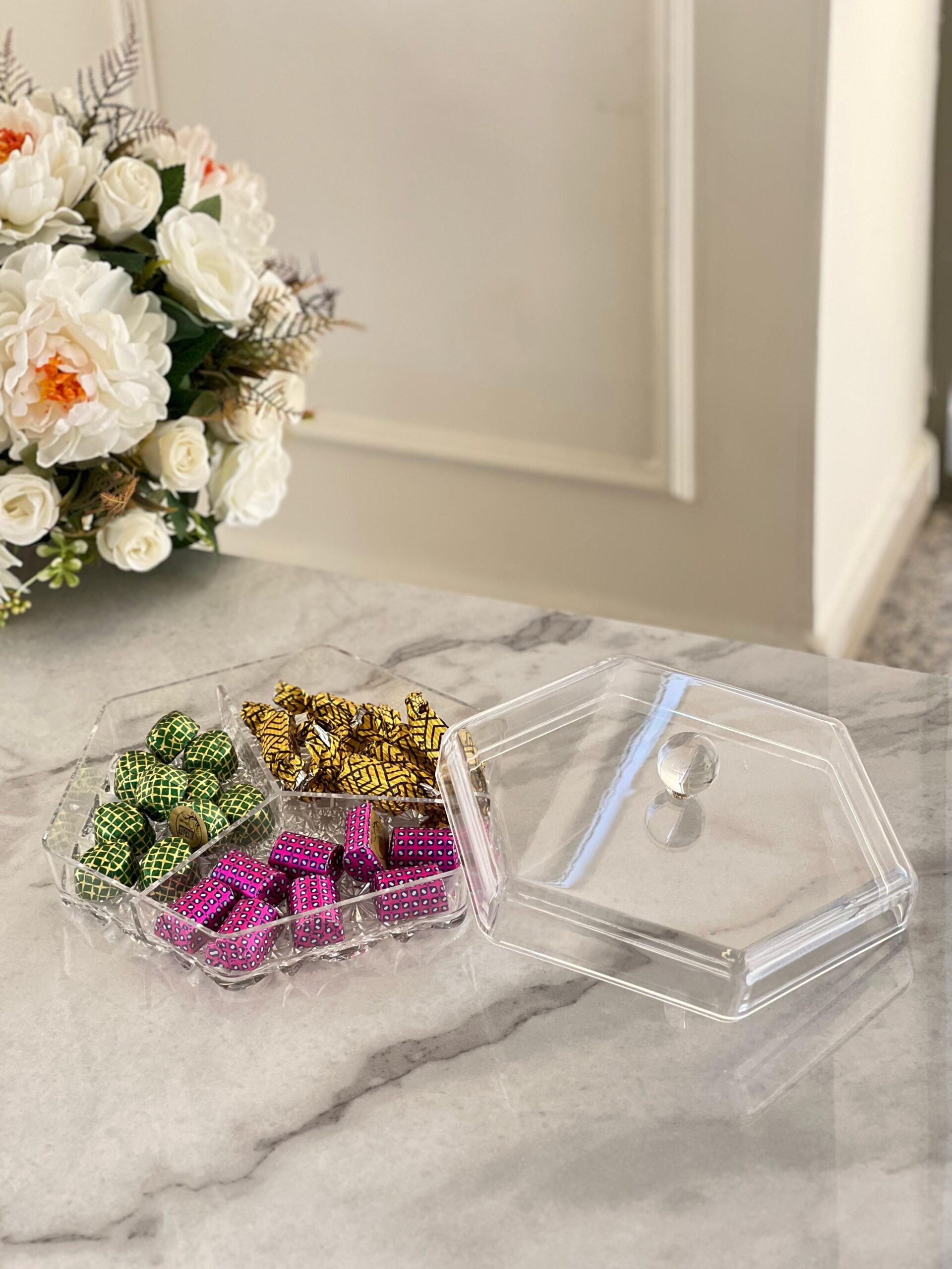 🍬 مضيفة أكريليك 3 أقسام – عرض خاص!
